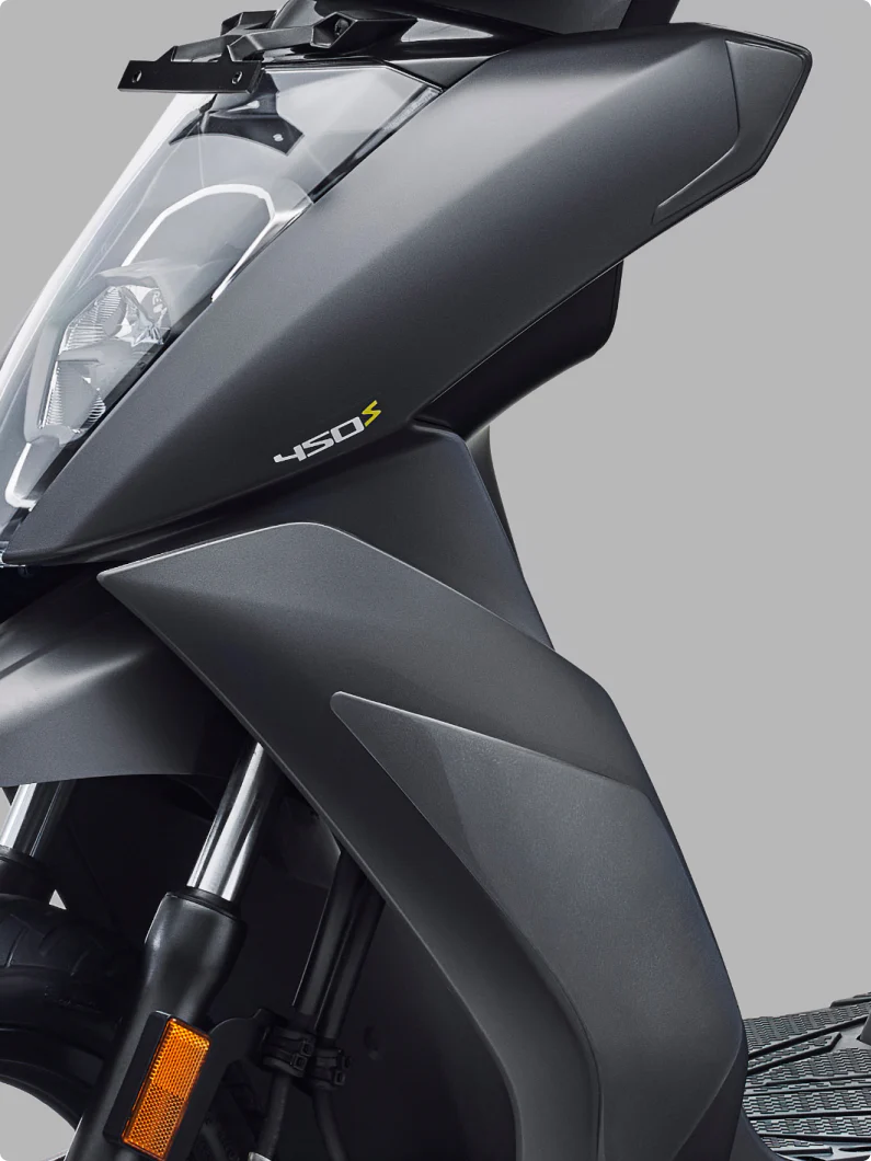 While the overall design maintains continuity with the existing 450 platform, the 450 Apex introduces a distinctive Indium blue color for its body panels. The transparent rear panels reveal a vibrant orange chassis, adding a touch of flair to the scooter’s aesthetic. These design choices aim to set the 450 Apex apart from its predecessors.